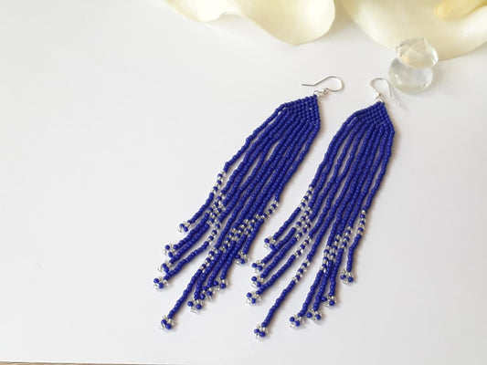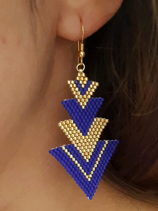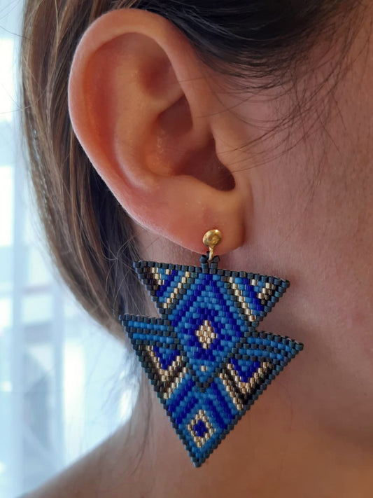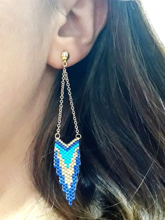 Cercei lungi franjuri aurora boreala -triunghi albastru