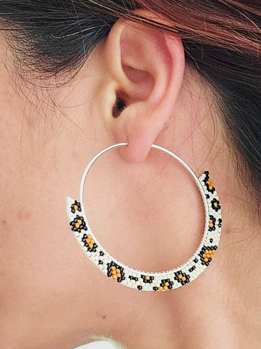 Cercei creole hoops argint cercuri mari Animal Print crem