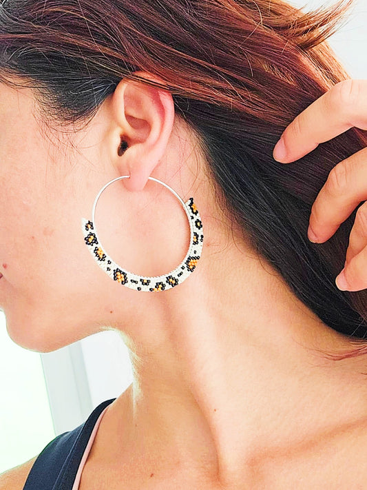 Cercei creole hoops argint cercuri mari Animal Print alb
