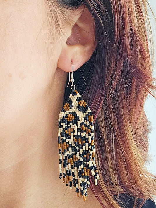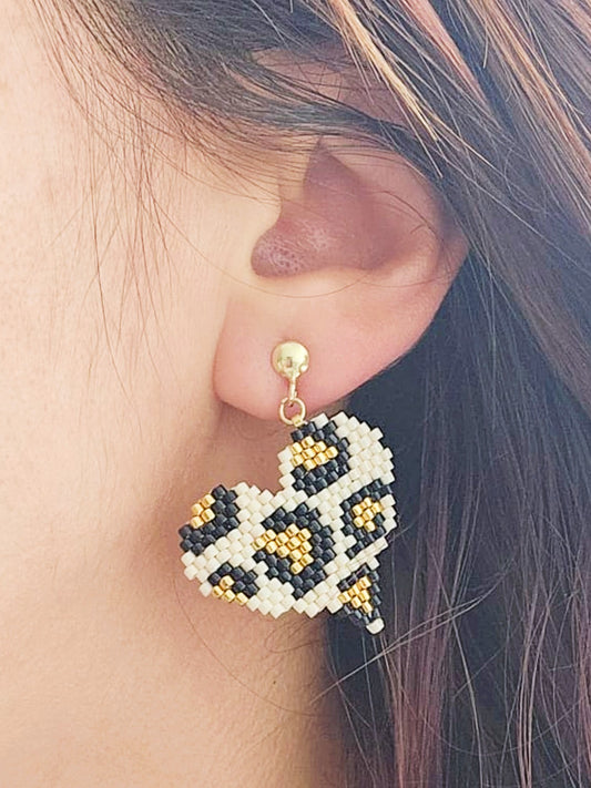 Intră într-un univers al contrastelor îndrăznețe și al expresivității vizuale cu selecția de cercei animal print, creați manual din mărgele Miyuki. Fiecare pereche este o declarație de stil – inspirată din frumusețea instinctuală a naturii și transpusă în forme geometrice elegante: cercuri, romburi, inimi, triunghiuri sau franjuri fluide.
