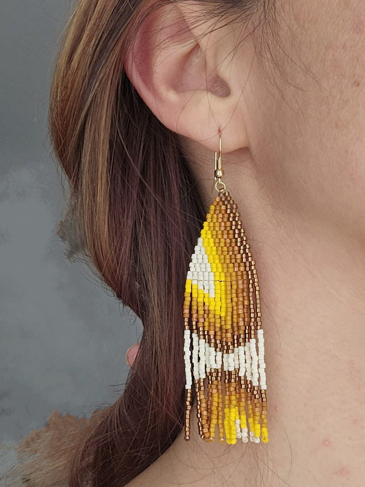 Cercei lungi franjuri toamna maro-galben-alb