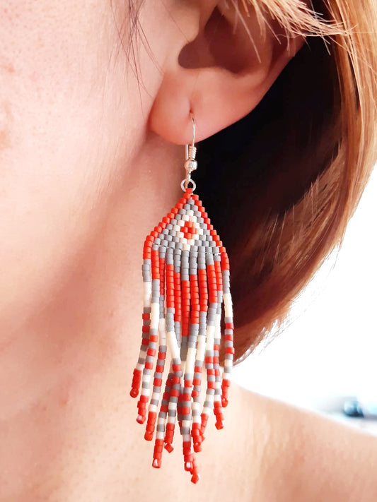 Cercei lungi franjuri portocaliu-gri-alb
