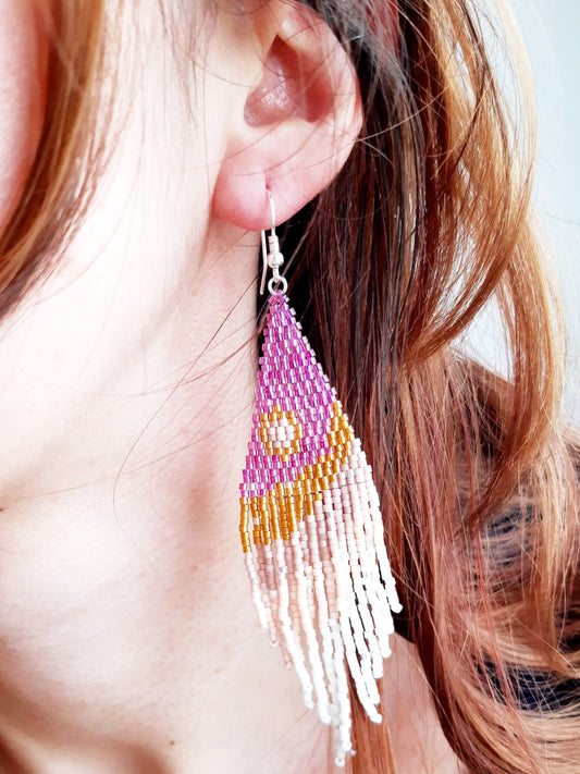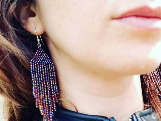 Cerceii sunt realizați manual din mărgele Miyuki în culori diverse și sunt disponibili în diferite lungimi pentru a oferi un look elegant și sofisticat. Accesorizati cu agățători din argint, acești cercei adaugă o notă de rafinament și fluiditate fiecărei ținute. Cerceii lungi simbolizează grația, alungirea siluetei și o eleganță discretă. Ei atrag atenția prin mișcarea lor delicată și sunt ideali pentru ocazii speciale sau pentru a transforma un outfit de zi într-unul de seară. Alege cerceii lungi pentru un stil rafinat și feminin.