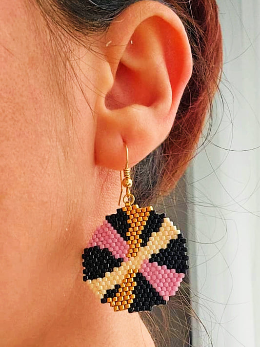 Cercei cerc negru-roz-auriu-alb