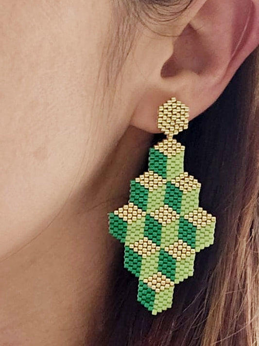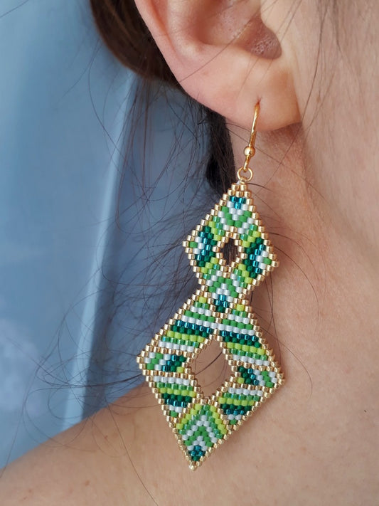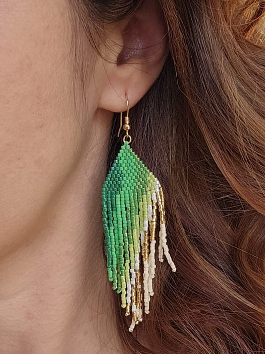 Cerceii sunt creați manual din mărgele Miyuki în nuanțe vibrante de verde, fiind disponibili în diverse dimensiuni. Accesorizati cu agățători din argint, acești cercei aduc un strop de natură și prospețime în orice ținută. Verdele simbolizează echilibrul, armonia și regenerarea, fiind asociat cu liniștea interioară și energia pozitivă. Cerceii verzi sunt ideali pentru cei care doresc să își exprime legătura cu natura și să aducă o notă de calm și eleganță în stilul lor.
